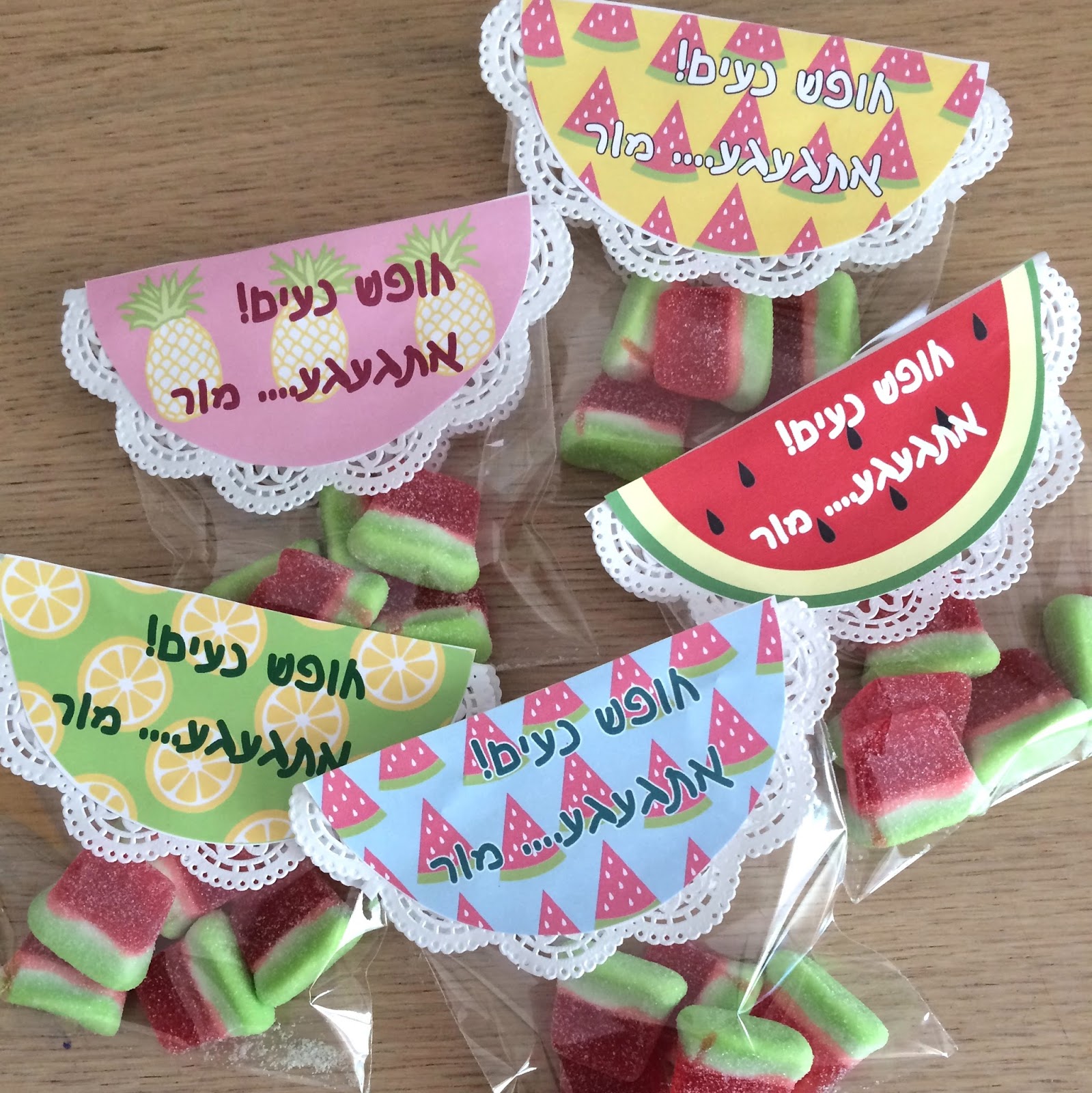הכנתי קבצים של אבטיחים, קניתי סוכריות גומי אבטיח, דוליסים, שקיות ניילון קטנות